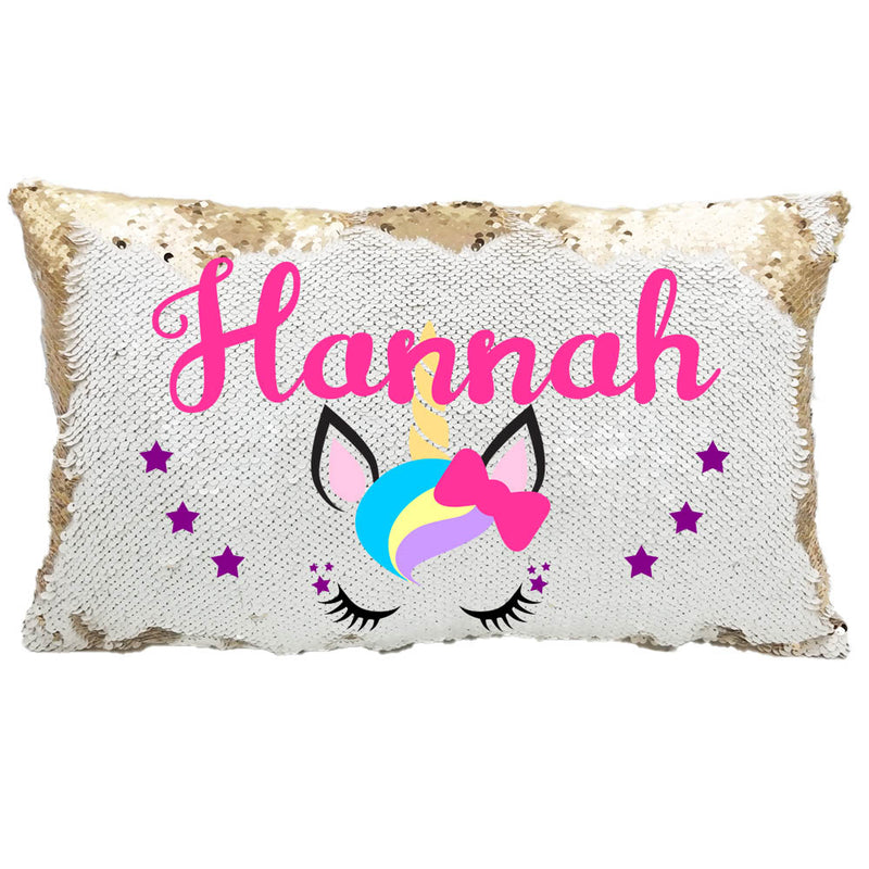 Handmade Personalized Rainbow Unicorn Rectangle Sequin Pillow Case