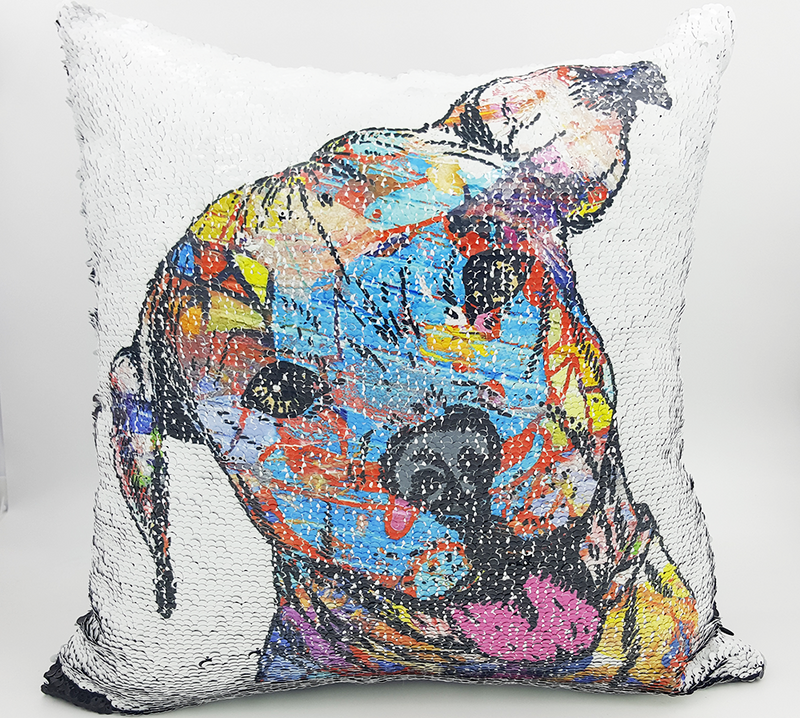 Handmade Personalized Dinosaur Footprints Reversible Sequin Pillow Case
